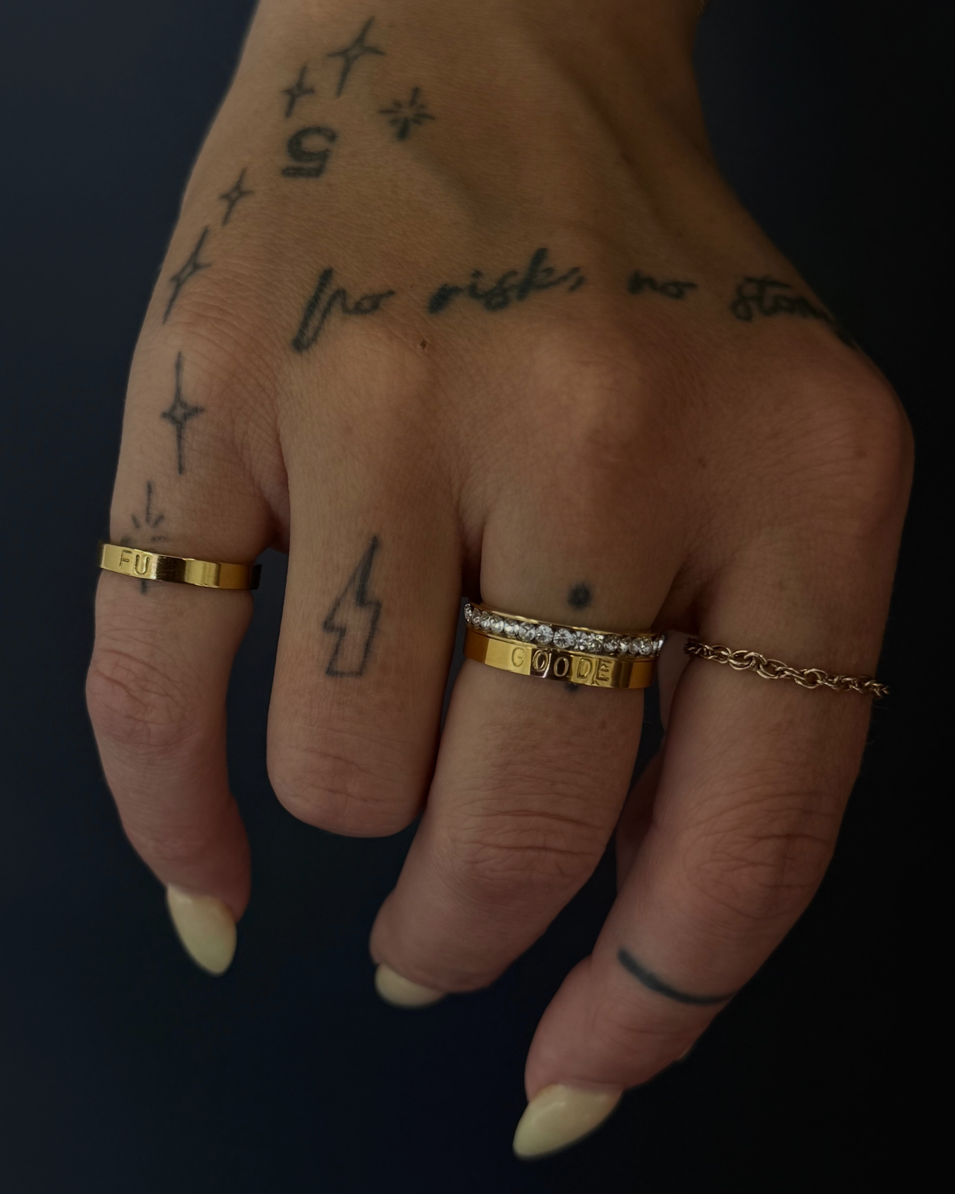 For the moments that leave an impression—forged in metal, worn with meaning. The Marked Collection is where stories become statements. Each ring is custom-stamped with the names, dates, or words that matter most. Whether it’s a quiet reminder or a bold declaration, these pieces don’t just accessorize—they memorialize. Because what marks you, makes you.